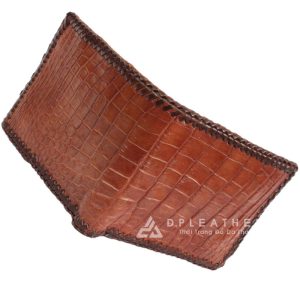 Ví da cá sấu 1 mặt đan viền làm bằng da cá sấu thật 100% ở 1 mặt bóp da