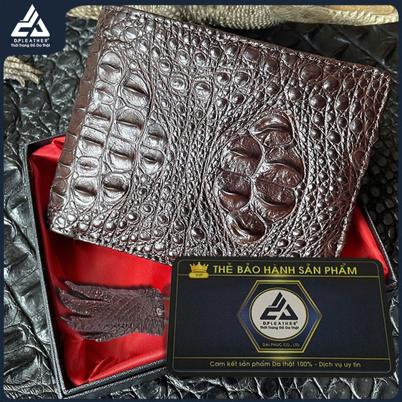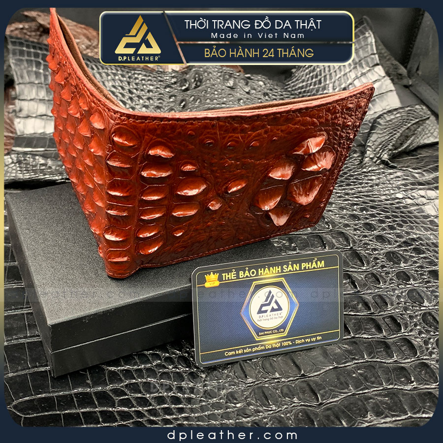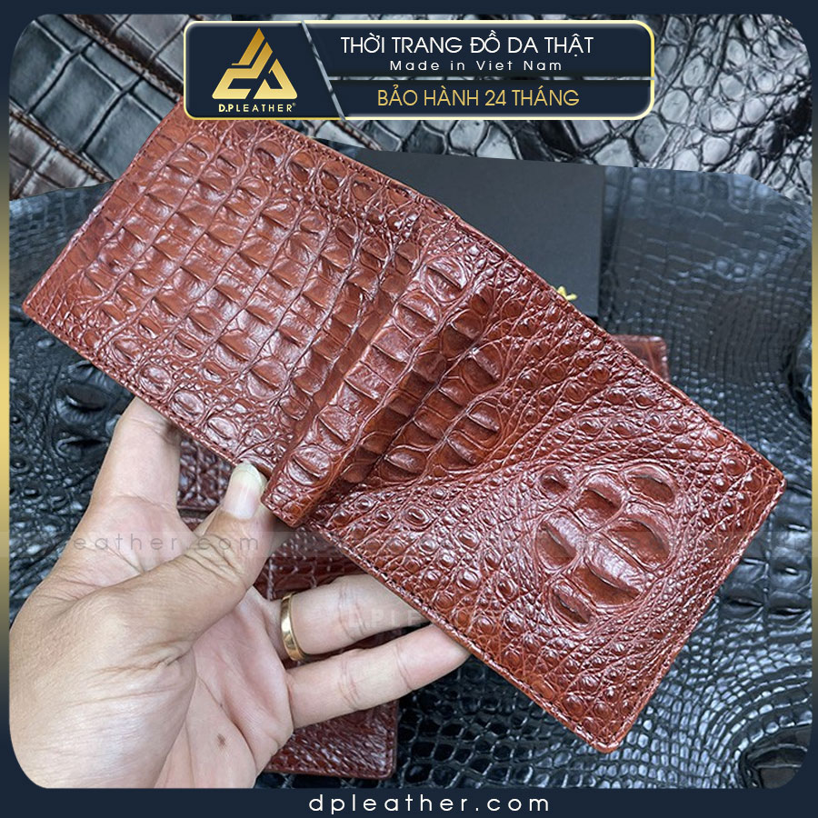 - Đặc điểm nổi bật: 1 mặt được làm bằng da cá sấu thật 100%, mặt còn lại làm bằng da bò, nhiều ngăn chia để được nhiều tiền, thẻ CCCD, Giấy phép lái xe và nhiều giấy tờ khác